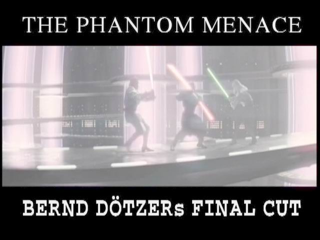 Im BERND DÖTZERs FINAL CUT befindet sich die von mir neu eingefügte Lichtschwert-Sequenz zwischen den ersten beiden in der Originalversion verwendeten Lichtschwert-Sequenzen:
