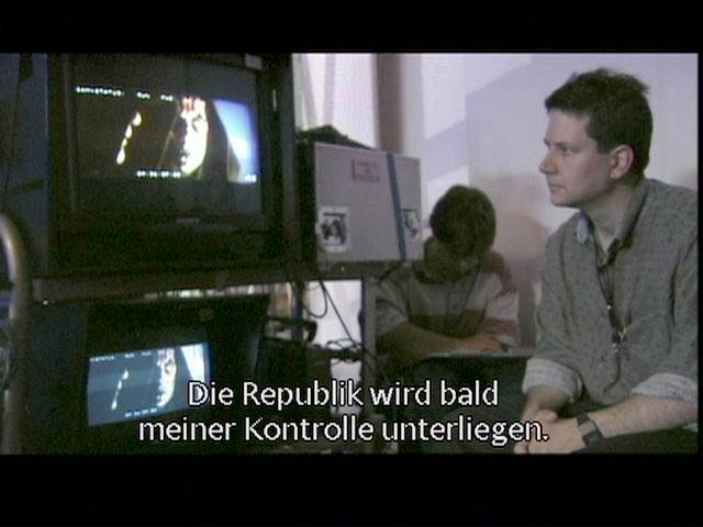 Auf Kontroll-Monitoren ist eine enge Zweieraufnahme der beiden Sith-Lords zu sehen. Der gesprochene Text des Darth Sidious (gesprochen von Schauspieler Ian McDiarmid) ist im Making Of diesen Monitorbildern unterlegt.