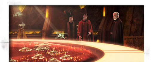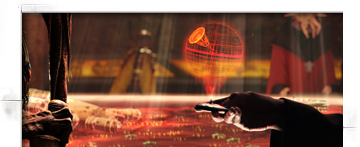 Obwohl der Todesstern das Kernstück dieser Szene ist, wird der Kriegsraum von einer ausgedehnten holographischen Schlachtkarte beherrscht, auf der Kanonenboote der Republik über dem Bodenkrieg herumschwirren wie Insekten. „Eine Menge von dem Zeug in der Mitte des Tischs machte ich zusammen mit einigen Jungs aus der Animatics-Sektion. Sie renderten für mich einige einfache Modelle, aber mir wurde erlaubt, die Regie darüber zu führen, wo diese Elemente am Ende platziert wurden. Ich meine, das sind Hologramme, die alle diese feinen Linien in sich tragen, und Du zeichnest sie auf Film auf, und sie stechen so hervor, dass diese Sequenz in ihrer Visualität und Kreativität wohl die Herausforderndste von allen war.“