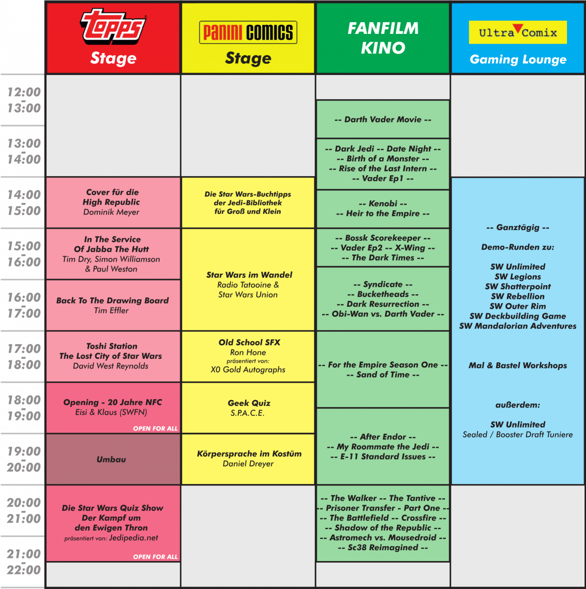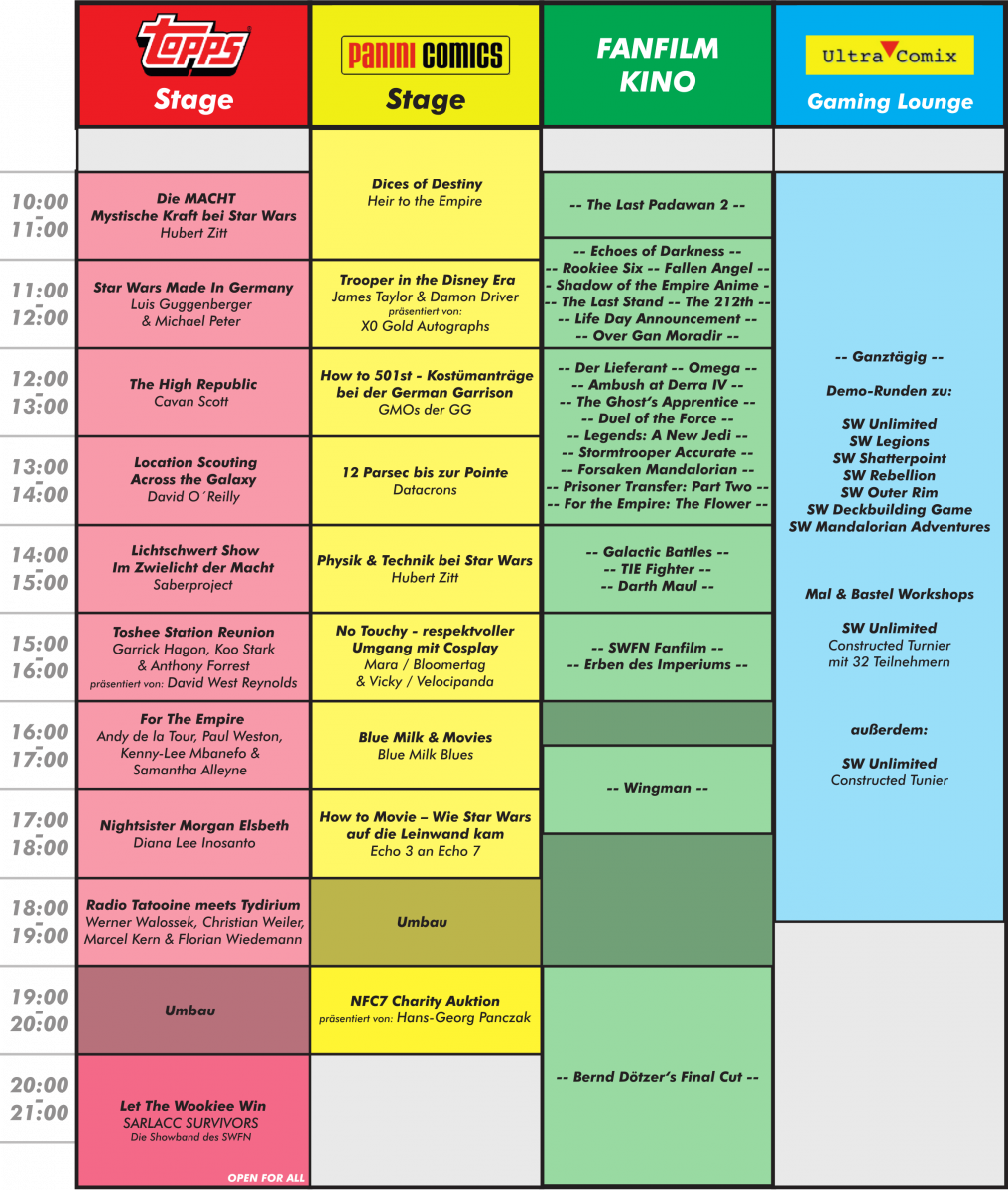 Wir von SWU sind in diesem Jahr gleich doppelt aktiv: Neben unserem Stand, den ihr wie gewohnt in der Haupthalle findet und wo euch wie immer kostenlose exklusive Poster und einige Überraschungen erwarten, sind wir am Freitagnachmittag auch zusammen mit Radio Tatooine auf der kleinen Bühne im Einsatz, wenn es heißt: Star Wars im Wandel. Wir selbst sind gespannt, was dieses Panel mit sich bringen wird und freuen uns, euch dort oder am Stand zu sehen.
