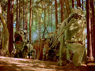 Das Budget der Ewok-Filme viel jedoch so aus, dass das Go-Motion Verfahren einfach zu teuer für diese Projekte war. Stattdessen wurde die klassische Art von Stop-Motion verwendet, um solche Kreaturen wie den Condor-Drachen, die Blurrgs und die Boar-Wölfe zu verwirklichen. Verantwortlich für die Stop-Motion Effekte waren übrigens Oscarpreisträger Phil Tippet und John Berg.