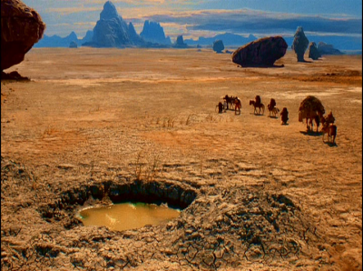 Für Karawane der Tapferen wurden insgesamt über 25 Matte-Zeichnungen und mindestens 50 Bluescreen Aufnahmen erstellt. Eine für die damalige Zeit für Fernsehfilme überdurchschnittliche Anzahl.
