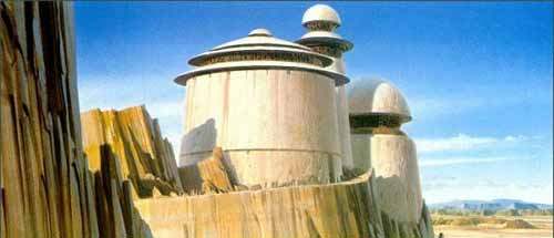 Glücklicherweise mutet Lucas seinen Helden diesen unerfreulichen Ort nicht lange zu, sondern führt sie nach einer tragischen Begegnung mit einem Dunklen Lord der Sith weiter nach Aquilae, einer Welt, die große Ähnlichkeit mit dem späteren Tatooine hat, gleichzeitig jedoch auch Anleihen an das spätere Alderaan nimmt. Aquilae ist eine Wüstenwelt, in deren Zentrum sich ein märchenhafter Palast erhebt, eine wahre Oase mit Gärten, Springbrunnen und reichem Pflanzenwuchs, wo König Kayos und Königin Breha mit ihrer Familie leben.