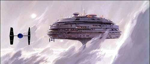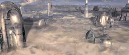Die imperiale Stadt wird als leuchtender Ort beschrieben, kuppelförmig, schwebend und auf einem großen Turm ruhend, der tief hinunter in das unendliche Wolkenmeer reicht – eine recht genaue Beschreibung der späteren Wolkenstadt.