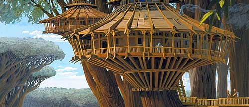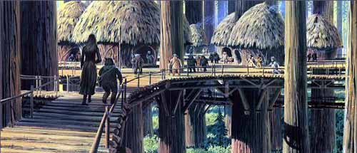 Außerdem weist Yavin hier Charakteristiken von Endor und Kashyyyk auf, riesige mit grauem Fell bedeckte Wesen leben hier, die Wookees, deren Kaapauku-Stamm von einem Häuptling namens Auzituck und seinem Sohn Chewbacca angeführt wird. Außerdem sind die Bäume zu diesem Zeitpunkt noch unglaublich riesig, ein weiterer Punkt, der später an Kashyyyk ging. Zuletzt ist Yavin auch die Heimat des Ehepaars Lars, das hier in einem Baumhaus lebt, eine Idee, die später im Holiday Special und in Episode VI mit dem Baumdorf der Ewoks aufgegriffen wurde.