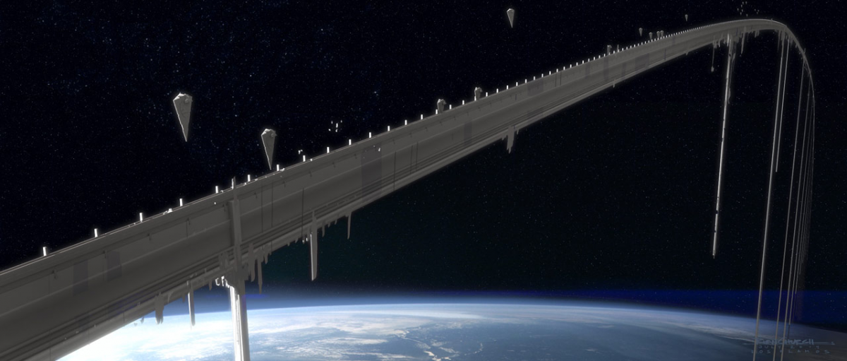 Eine unserer Ideen war es hierbei, einen künstlichen Ring um Scarif zu designen, einen Konstruktionsring für Sternenzerstörer, der gleichzeitig als Betankungs- und Versorungsstation dienen würde. Einen Ring fanden wir dabei interessant, weil zumindest für mich der Todesstern das ultimative imperiale Bauwerk ist. Und visuell eine echte Ansage. Da unser Film nun vor dem Todesstern spielen würde, überlegten wir uns, was strukturell ebenfalls beeindruckend sein könnte, ohne den Todesstern in den Schatten zu stellen. So kam uns die Idee eines orbitalen Rings. Dieser schien uns gleichzeitig zur Technologie des Imperiums zu passen und den Todesstern visuell nicht zu übertreffen.