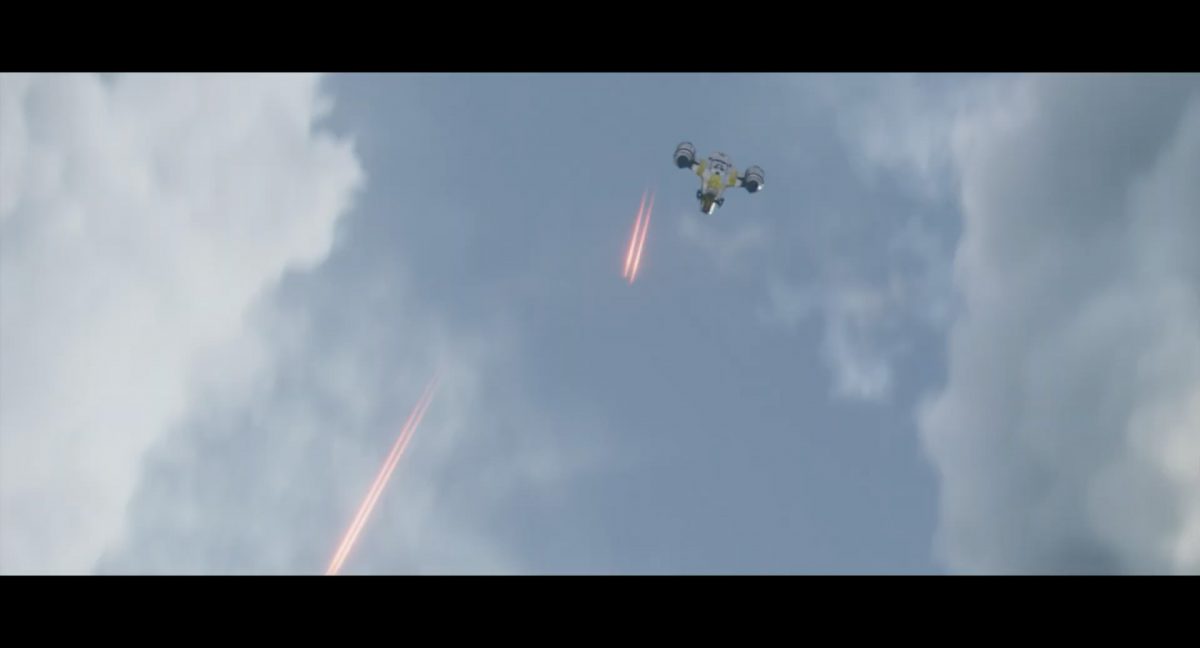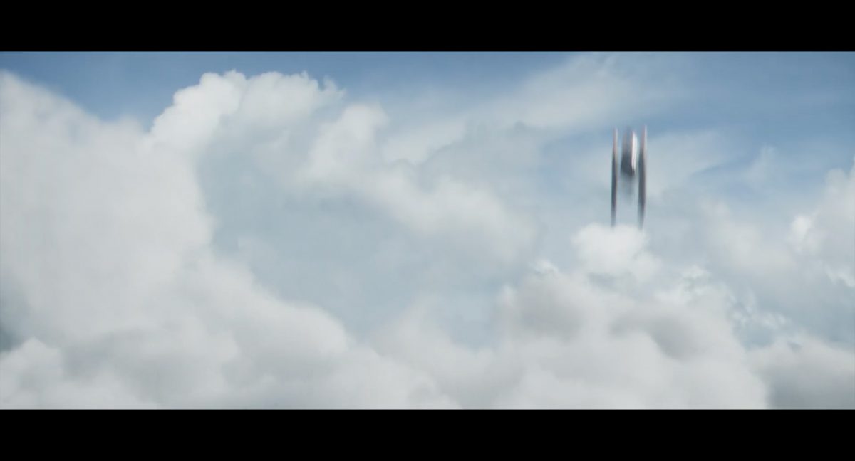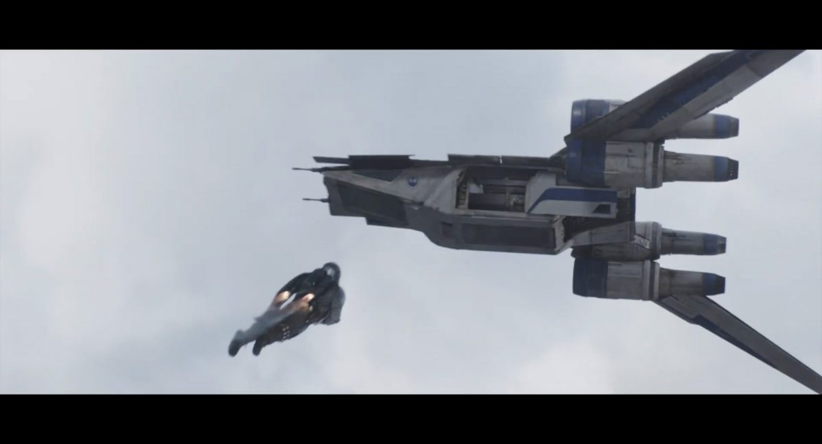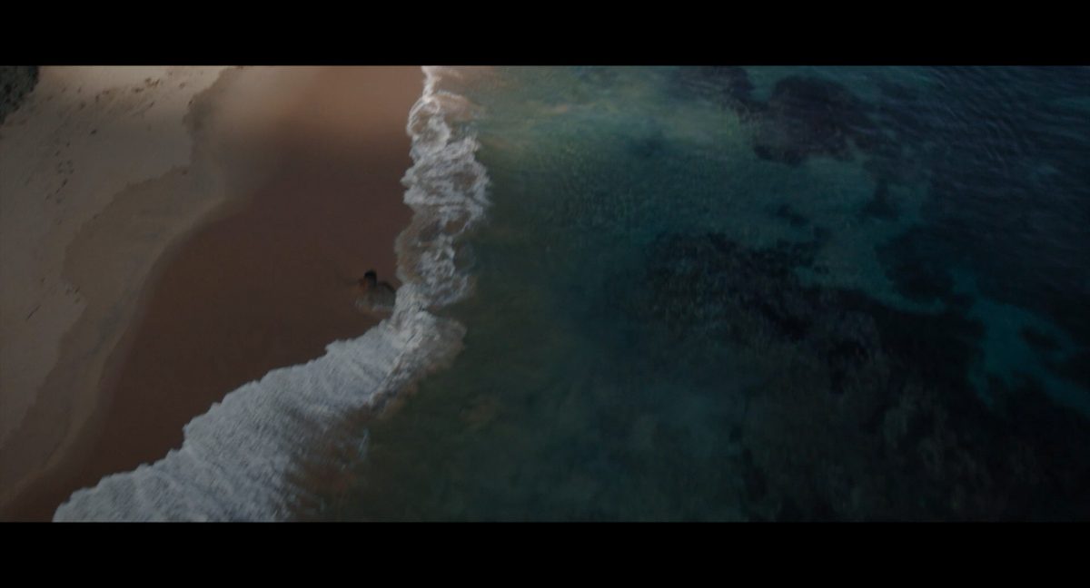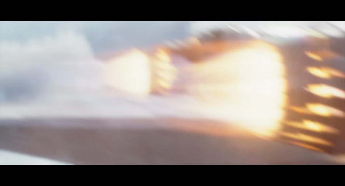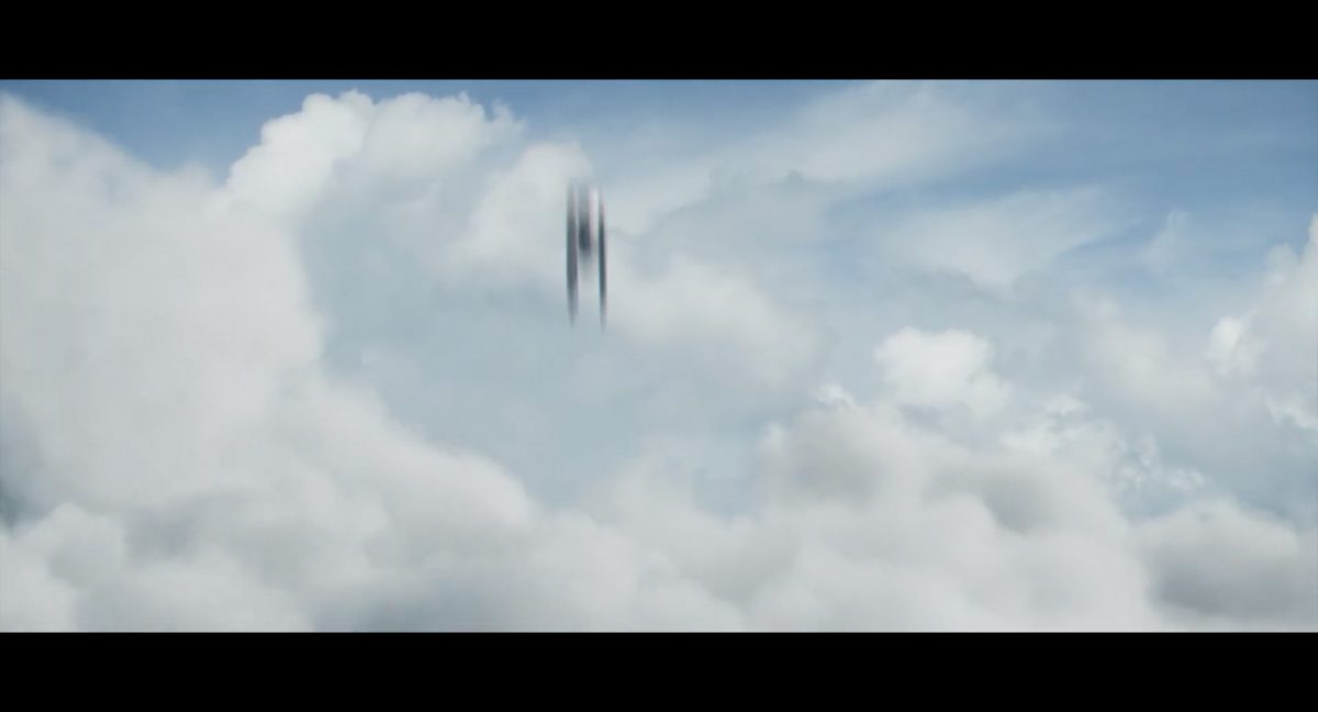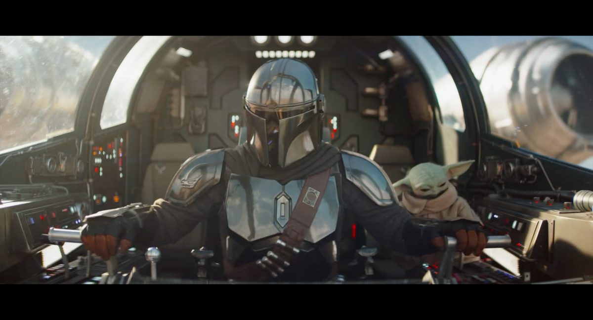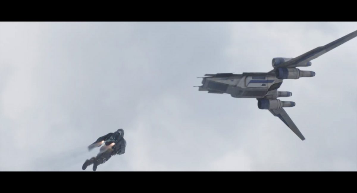 Die ersten Sekunden dieses Teasertrailers offenbaren uns den Blick auf einen Strand aus großer Höhe, welchen wir mit einer konstanten Geschwindigkeit zu überfliegen scheinen, während sich die sanften Wellen des türkis blaugrünen Meeres schäumend über den Sand ergießen. Auditiv begleitet wird die von Wolkenfetzen beschattete Szenerie von einem einschneidenden typischen Eröffnungs-Sound.Dieser Sound vermischt sich unversehens mit dem Turbinengeräusch eines Raumschiffes, welches vom unteren Bildschirmrand aus ins Bild geflogen kommt und in dieselbe Richtung weiterfliegt, in welche die Kamera ohnehin schon unterwegs war: Wie das geübte Auge erkennt, handelt es sich um die Razor Crest, oder zumindest um ein Schiff desselben Types, sofern das Original nicht wieder zusammengesetzt worden ist. Man beachte die auffälligen gelben Markierungen, welche die reflektierende Oberseite schmücken und vage an die Lackierungen von Y-Flüglern erinnern.Während die Kamera leichthin nach oben schwenkt, um die Flugbahn des Schiffes zu verfolgen, kommt links deutlich ein den Strand säumender Felshang ins Bild.Auf der Oberseite des Hangs ist eine grüne Dschungellandschaft auszumachen, ebenso ein Camp. Die Razor Crest scheint dieses Lager anzusteuern. Es dürfte sich hierbei um die NR-Basis auf Adelphi handeln, welche zuvor bereits mehrfach in der Serie gezeigt und erwähnt wurde.Eine Schwarzblende.