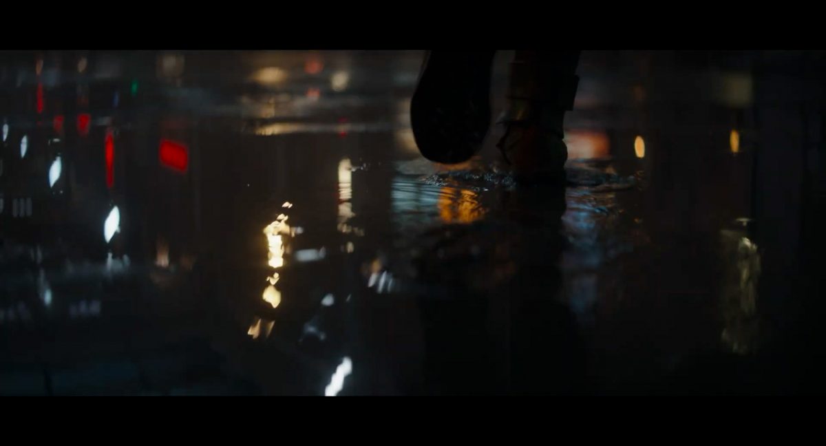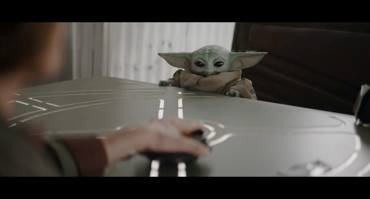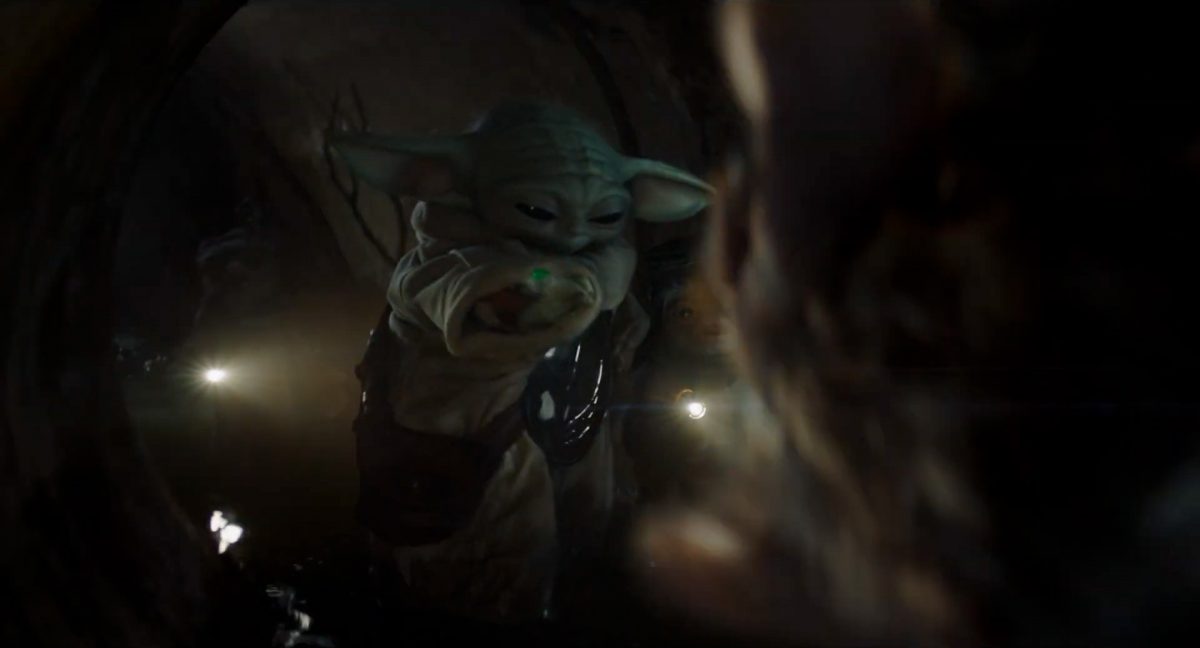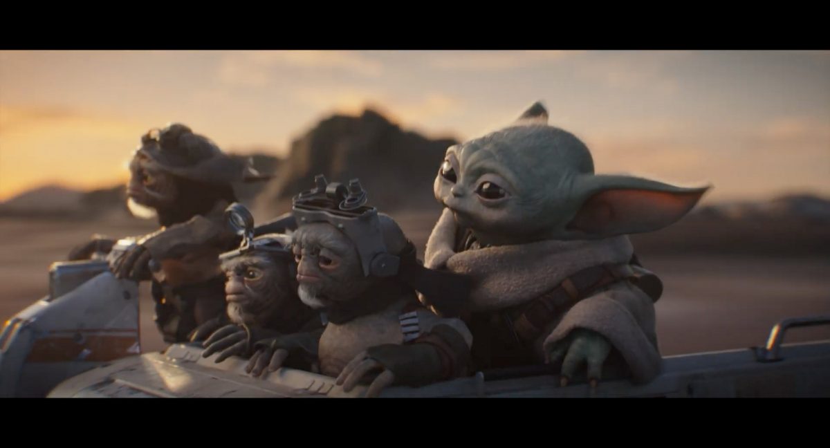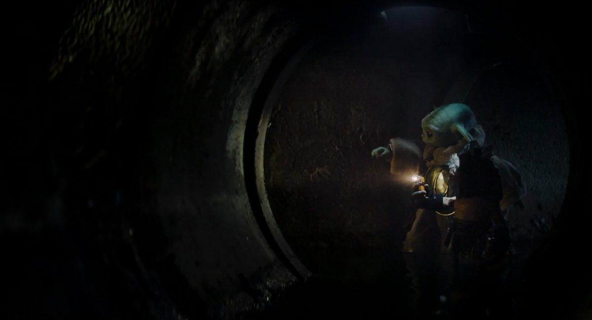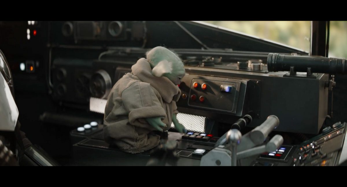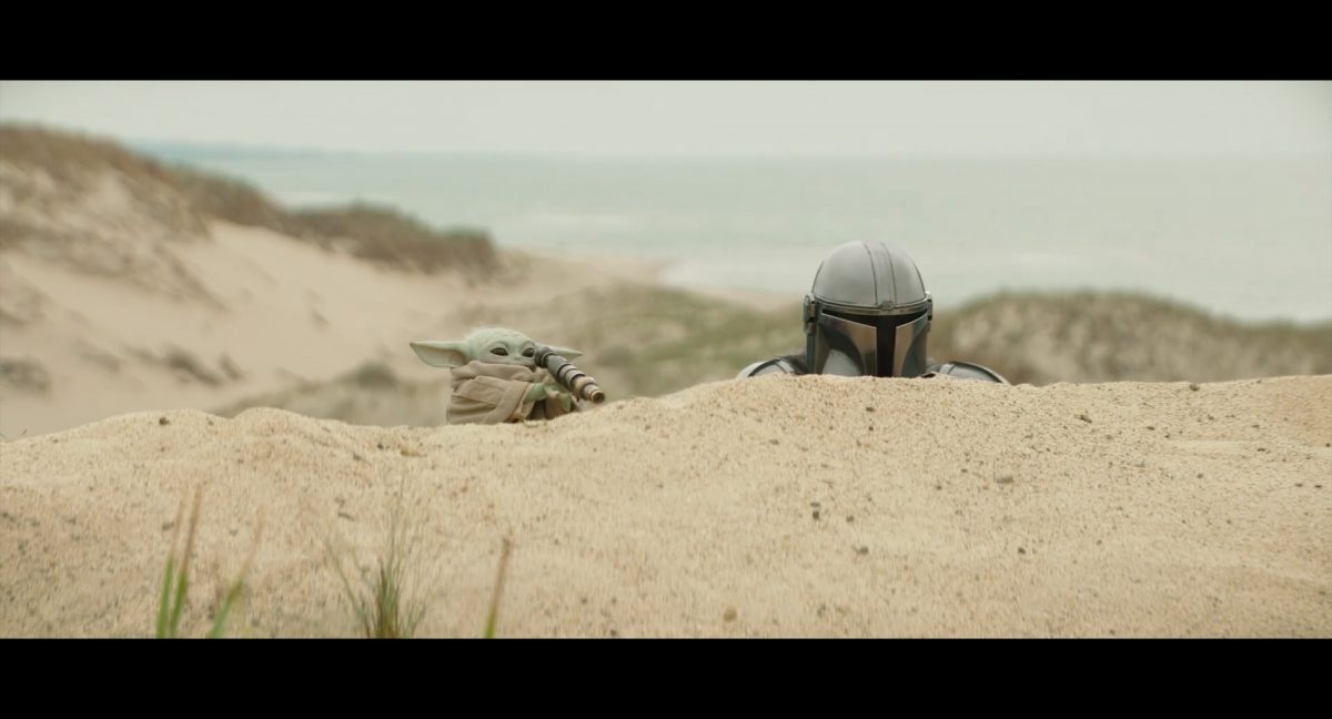 Der folgende Schnitt präsentiert, untermalt mit den anfänglichen zaghaften Tönen ihrer Titelmusik, den Mandalorianer Din Djarin (mutmaßlich dargestellt von Pedro Pascal) und seinen Adoptivsohn, den kleinen Grogu. Beide luken hinter eine Sanddüne hervor, verschwommen im Hintergrund sind sandige Hügel und ein Meer zu erkennen. Dabei benutzt Grogu offenbar ein abmontiertes Zielfernrohr als Fernglas.Klassische Makrofernglas-Optik; wer genau gerade hier durch das Visier schaut, bleibt uns vorerst verborgen. Allerdings scheint es sich der Gestaltung nach zu urteilen dabei nicht um das Visier zu handeln, welches Grogu gerade in der Hand hielt.Das Fernglas-Display hat einen schlichten holobläulichen Gesamtlook mit herausstechenden roten und gelben Zahlen-Anzeigen. Wir betrachten eine Gebäudestruktur, und als das Fernglas nach unten schwenkt, kommen mehrere Imperiale Sturmtruppler ins Bild, welche jenen Bau scheinbar am Haupttor, zu welchem eine breite, aber kurze Treppe hochführt, bewachen. Es hat den Anschein, dass ein kleiner rötlich gefärbter Speeder vor dem Gebäude steht. Überdies ist eine breite, abgerundete Säulen-Struktur vor dem Eingang angebracht.Eine weitere Schwarzblende, welcher sogleich eine Kameraperspektive in einem dunklen Tunnelnetzwerk folgt. Dort sehen wir aus einem Tunnel heraus, erleuchtet in einem schwachen Lichtkegel, die Gestalt eines kleinen Anzellaners (bekanntester Vertreter dieser Spezies ist Babu Frik aus Episode IX: Der Aufstieg Skywalkers), welcher mit einer kleinen Lampe in Richtung Kamera leuchtet. Es könnte sich dabei um einen derjenigen Anzellaner handeln, welche in der dritten Staffel bereits ihren Auftritt hatten.Nach einer Sekunde wendet er sich ab und bewegt nach rechts in den nächsten Tunnel.Noch bevor er ganz verschwunden ist, kommt hinter ihm von links Grogu ins Bild gelaufen.Er verlangsamt sein Tempo und blickt blinzelnd in unsere Richtung. Dann blendet das Bild erneut ab.Schnitt zum großen Co-Star des Films – Sigourney Weaver als Offizierin der Neuen Republik. Sie sitzt gerade, den Zuschauenden zugewandt, in der Messe der Adelphi-Basis an einem Tisch und studiert bei einer Tasse Was-auch-immer-frau-zu-dieser-Tageszeit-bei-der-Arbeit-trinkt ein Datenpad. Unter ihrem Jacken-Kragen kann man das Rangabzeichen mit den vier roten Punkten erkennen, was in dieser Anordnung auf einen Posten als Colonel hinweisen dürfte. Einen Namen für ihre Rolle haben wir zu diesem Zeitpunkt noch nicht.Als eine Gestalt – wir vermuten mal ganz stark den titelgebenden mandalorianischen Protagonisten – an sie herantritt, hebt sie den Blick, welcher uns leicht abschätzend vorkommt.Über Weavers Schulter hinweg sehen wir, wie der kleine grüne Freund des Mandos von unten an die Tischkante kommt und sich an dieser festhält. Auf dem Tisch mit einem Lichtornament verzierten metallischen Tisch ist eine Schale Cheerios oder ähnliches auszumachen.Die nächste Einstellung bestätigt uns unüberraschenderweise auch die Anwesenheit Dins bei diesem Treffen, der zu Grogus Linken Platz genommen hat. Das weiße Interieur der Basis-Messe ist im Hintergrund klar auszumachen, ebenso wie die kleine Schar anderer Gäste: Offizier- und Pilotenpersonal der Neuen Republik; letztere sind klar an ihren klassisch-orangefarbenen und blauen Flugmonturen zu erkennen. Zudem prangt das legendäre Symbol der einstigen Rebellenallianz klar und deutlich auf einem Banner.Grogu befindet sich mal wieder in einem Status der gastronomischen Selbstfindung und zieht mithilfe der Macht die Schüssel mit den Leckereien zu sich hin.Dieser Vorgang ist offenbar noch ein gewisser Kraftakt für ihn, der der Kleine kneift vor Konzentration die Kulleraugen zusammen, während die Schüssel stoßweise immer näherrückt.Sein Ziehvater nimmt den Vorgang schweigend zur Kenntnis. (Gleichzeitig kommt aufgrund ihrer Bewegungen der Verdacht auf, dass zwei der Piloten im Hintergrund eine Art von Tischkicker miteinander spielen.)Auch Colonel “Ellen Ripley” registriert den vorsätzlichen Akt des Mundraubs – ohne den Blick vom Mando abzuwenden, greift sie zur Seite und packt die Schüssel. In diesem Moment verhallt die Trailermusik.Ihren Snack fest im Griff wirft sie nun doch Grogu einen Blick zu.Dieser stellt seine Bemühungen umgehend ein und blick leicht traurig der Schüssel hinterher, welche Weavers Figur sogleich wieder in ihre Richtung zieht.Ein kauziger, aber unbestreitbar süßer Laut kommt ihm resigniert über die grünen Lippen.Mit dem unverkennbaren Mando-Sound als musikalische Untermalung kommt nun auch erstmals das chromatisierte Lucasfilm-Logo auf schwarzem Hintergrund ins Bild.Eine Stadtszenerie bei Nacht, diverse Neonschrift-Leuchten an Gebäuden … doch etwas ist verkehrt herum. Wir scheinen uns auf dem Kopf zu befinden …… denn wie wir feststellen, handelt es sich um eine Kameraeinstellung einer Pfütze, in welcher sich die Szenerie gespiegelt hat. In diesem Moment stampft ein Paar Stiefel durch eben jene Pfütze. Zu wem sie gehören, ist nicht klar ersichtlich.Das Innere einer Kantine oder sonstigen Etablissements. Ein Tisch mit abgerundeten Ecken und vier gepolsterten Stühlen, auf welchem noch ein paar Gläser ruhen befindet sich im Raum. Dahinter ist eine Bar auszumachen, mit einer roten Theke, deren dunkle Tischplatte scheinbar von unten beleuchtet wird. Eine oval geformte Auslassung in der graugrün gekachelten Wand beinhaltet mehrere Glasgefäße mit mutmaßlich verschiedenen Spirituosen.Im Vordergrund der Szene befindet sich Din Djarin, welcher sich gerade in einer Konfrontation mit einem Gegner befindet, den er sogleich mit einem heftigen Tritt in die Magengrube begegnet. Die fremde Gestalt wirkt einigermaßen humanoid und scheint eine Art hellbraunen Trenchcoat zu tragen.Einen schnellen Schnitt später fliegt eine Figur (auf den ersten Blick könnte es dieselbe sein, aber auf den zweiten wirkt es eher wie eine andere, denn die Kleidung wirkt vom Farbton etwas dunkler und and