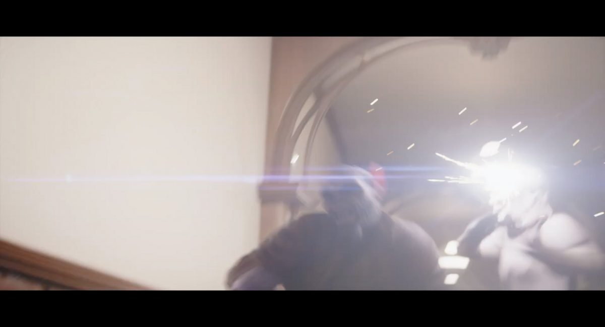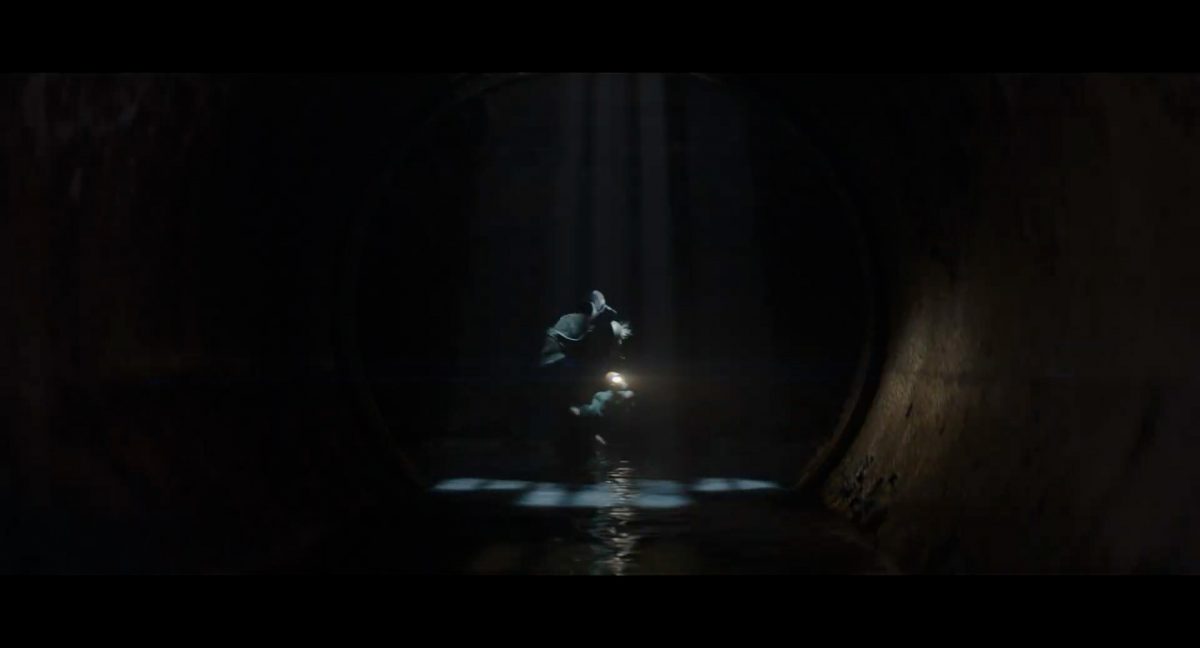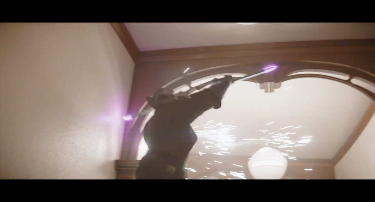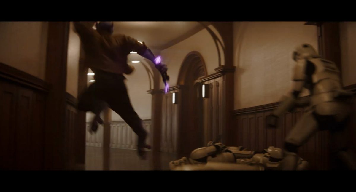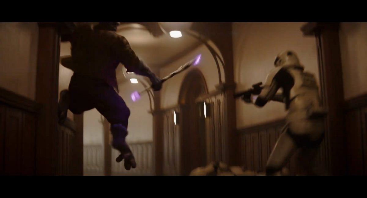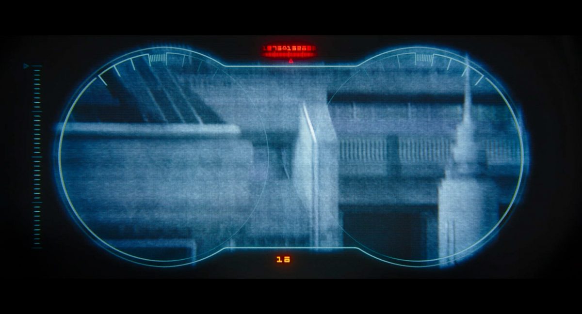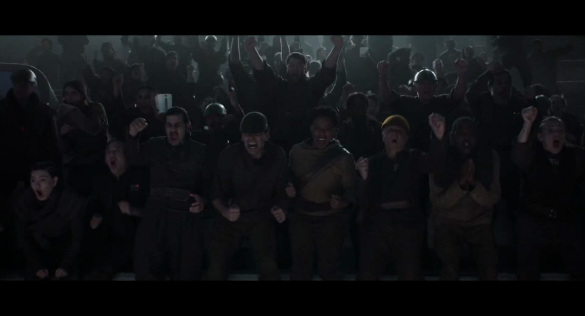 Der folgende Schnitt präsentiert, untermalt mit den anfänglichen zaghaften Tönen ihrer Titelmusik, den Mandalorianer Din Djarin (mutmaßlich dargestellt von Pedro Pascal) und seinen Adoptivsohn, den kleinen Grogu. Beide luken hinter eine Sanddüne hervor, verschwommen im Hintergrund sind sandige Hügel und ein Meer zu erkennen. Dabei benutzt Grogu offenbar ein abmontiertes Zielfernrohr als Fernglas.Klassische Makrofernglas-Optik; wer genau gerade hier durch das Visier schaut, bleibt uns vorerst verborgen. Allerdings scheint es sich der Gestaltung nach zu urteilen dabei nicht um das Visier zu handeln, welches Grogu gerade in der Hand hielt.Das Fernglas-Display hat einen schlichten holobläulichen Gesamtlook mit herausstechenden roten und gelben Zahlen-Anzeigen. Wir betrachten eine Gebäudestruktur, und als das Fernglas nach unten schwenkt, kommen mehrere Imperiale Sturmtruppler ins Bild, welche jenen Bau scheinbar am Haupttor, zu welchem eine breite, aber kurze Treppe hochführt, bewachen. Es hat den Anschein, dass ein kleiner rötlich gefärbter Speeder vor dem Gebäude steht. Überdies ist eine breite, abgerundete Säulen-Struktur vor dem Eingang angebracht.Eine weitere Schwarzblende, welcher sogleich eine Kameraperspektive in einem dunklen Tunnelnetzwerk folgt. Dort sehen wir aus einem Tunnel heraus, erleuchtet in einem schwachen Lichtkegel, die Gestalt eines kleinen Anzellaners (bekanntester Vertreter dieser Spezies ist Babu Frik aus Episode IX: Der Aufstieg Skywalkers), welcher mit einer kleinen Lampe in Richtung Kamera leuchtet. Es könnte sich dabei um einen derjenigen Anzellaner handeln, welche in der dritten Staffel bereits ihren Auftritt hatten.Nach einer Sekunde wendet er sich ab und bewegt nach rechts in den nächsten Tunnel.Noch bevor er ganz verschwunden ist, kommt hinter ihm von links Grogu ins Bild gelaufen.Er verlangsamt sein Tempo und blickt blinzelnd in unsere Richtung. Dann blendet das Bild erneut ab.Schnitt zum großen Co-Star des Films – Sigourney Weaver als Offizierin der Neuen Republik. Sie sitzt gerade, den Zuschauenden zugewandt, in der Messe der Adelphi-Basis an einem Tisch und studiert bei einer Tasse Was-auch-immer-frau-zu-dieser-Tageszeit-bei-der-Arbeit-trinkt ein Datenpad. Unter ihrem Jacken-Kragen kann man das Rangabzeichen mit den vier roten Punkten erkennen, was in dieser Anordnung auf einen Posten als Colonel hinweisen dürfte. Einen Namen für ihre Rolle haben wir zu diesem Zeitpunkt noch nicht.Als eine Gestalt – wir vermuten mal ganz stark den titelgebenden mandalorianischen Protagonisten – an sie herantritt, hebt sie den Blick, welcher uns leicht abschätzend vorkommt.Über Weavers Schulter hinweg sehen wir, wie der kleine grüne Freund des Mandos von unten an die Tischkante kommt und sich an dieser festhält. Auf dem Tisch mit einem Lichtornament verzierten metallischen Tisch ist eine Schale Cheerios oder ähnliches auszumachen.Die nächste Einstellung bestätigt uns unüberraschenderweise auch die Anwesenheit Dins bei diesem Treffen, der zu Grogus Linken Platz genommen hat. Das weiße Interieur der Basis-Messe ist im Hintergrund klar auszumachen, ebenso wie die kleine Schar anderer Gäste: Offizier- und Pilotenpersonal der Neuen Republik; letztere sind klar an ihren klassisch-orangefarbenen und blauen Flugmonturen zu erkennen. Zudem prangt das legendäre Symbol der einstigen Rebellenallianz klar und deutlich auf einem Banner.Grogu befindet sich mal wieder in einem Status der gastronomischen Selbstfindung und zieht mithilfe der Macht die Schüssel mit den Leckereien zu sich hin.Dieser Vorgang ist offenbar noch ein gewisser Kraftakt für ihn, der der Kleine kneift vor Konzentration die Kulleraugen zusammen, während die Schüssel stoßweise immer näherrückt.Sein Ziehvater nimmt den Vorgang schweigend zur Kenntnis. (Gleichzeitig kommt aufgrund ihrer Bewegungen der Verdacht auf, dass zwei der Piloten im Hintergrund eine Art von Tischkicker miteinander spielen.)Auch Colonel “Ellen Ripley” registriert den vorsätzlichen Akt des Mundraubs – ohne den Blick vom Mando abzuwenden, greift sie zur Seite und packt die Schüssel. In diesem Moment verhallt die Trailermusik.Ihren Snack fest im Griff wirft sie nun doch Grogu einen Blick zu.Dieser stellt seine Bemühungen umgehend ein und blick leicht traurig der Schüssel hinterher, welche Weavers Figur sogleich wieder in ihre Richtung zieht.Ein kauziger, aber unbestreitbar süßer Laut kommt ihm resigniert über die grünen Lippen.Mit dem unverkennbaren Mando-Sound als musikalische Untermalung kommt nun auch erstmals das chromatisierte Lucasfilm-Logo auf schwarzem Hintergrund ins Bild.Eine Stadtszenerie bei Nacht, diverse Neonschrift-Leuchten an Gebäuden … doch etwas ist verkehrt herum. Wir scheinen uns auf dem Kopf zu befinden …… denn wie wir feststellen, handelt es sich um eine Kameraeinstellung einer Pfütze, in welcher sich die Szenerie gespiegelt hat. In diesem Moment stampft ein Paar Stiefel durch eben jene Pfütze. Zu wem sie gehören, ist nicht klar ersichtlich.Das Innere einer Kantine oder sonstigen Etablissements. Ein Tisch mit abgerundeten Ecken und vier gepolsterten Stühlen, auf welchem noch ein paar Gläser ruhen befindet sich im Raum. Dahinter ist eine Bar auszumachen, mit einer roten Theke, deren dunkle Tischplatte scheinbar von unten beleuchtet wird. Eine oval geformte Auslassung in der graugrün gekachelten Wand beinhaltet mehrere Glasgefäße mit mutmaßlich verschiedenen Spirituosen.Im Vordergrund der Szene befindet sich Din Djarin, welcher sich gerade in einer Konfrontation mit einem Gegner befindet, den er sogleich mit einem heftigen Tritt in die Magengrube begegnet. Die fremde Gestalt wirkt einigermaßen humanoid und scheint eine Art hellbraunen Trenchcoat zu tragen.Einen schnellen Schnitt später fliegt eine Figur (auf den ersten Blick könnte es dieselbe sein, aber auf den zweiten wirkt es eher wie eine andere, denn die Kleidung wirkt vom Farbton etwas dunkler und and