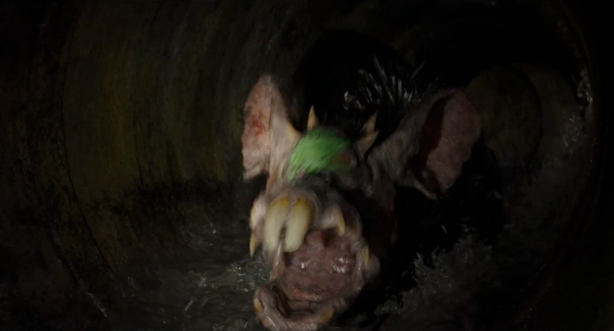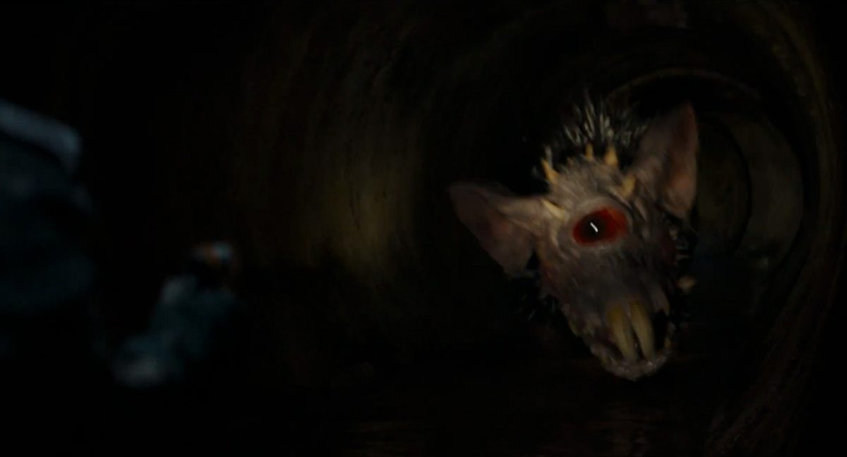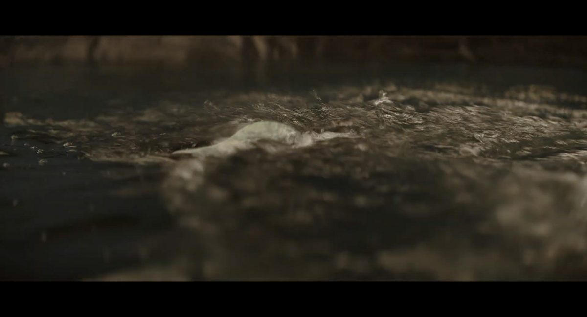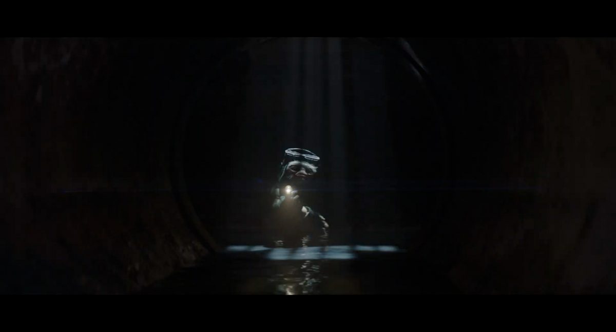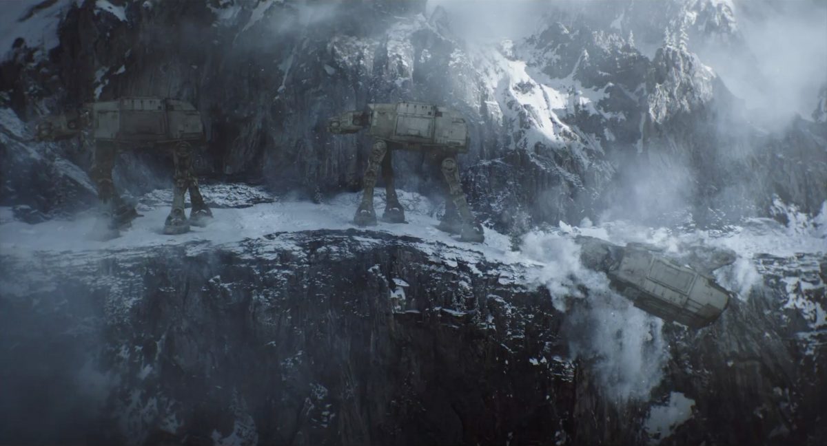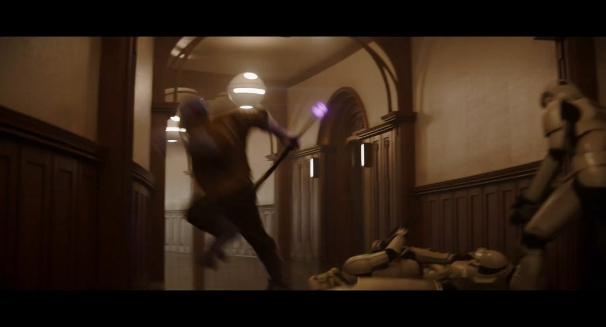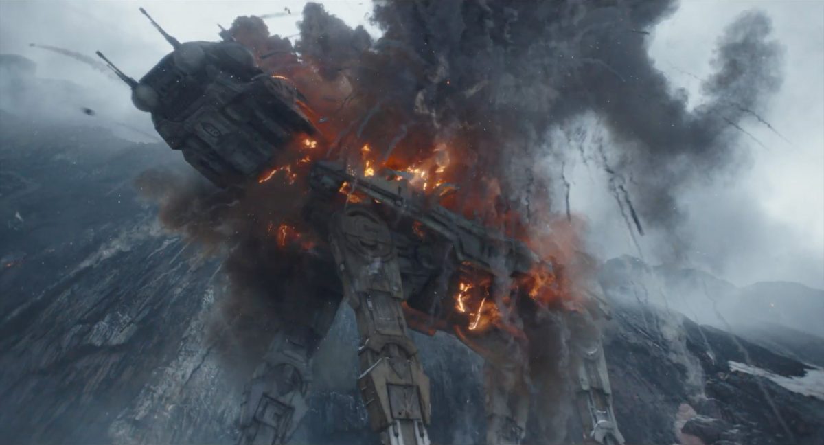 “… der Weg.”Din samt Grogu im Huckepack im Inneren des Cockpits eines AT-AT-Kampfläufers. Über ihnen sehen wir eine geöffnete Dachluke; hinter ihnen bahnt sich gerade eine Explosion ihren Weg aus dem Haupt-Korpus ins Cockpit. Wir sehen wohl das Ende der auf der Celebration Japan gezeigten Ausschnitts, in welchem Din den Kampfläufer entert und dabei mehrere Schneetruppler ausschaltet.Der Mando geht in die Knie, als wolle er zum Sprung ansetzen …… und fliegt gerade nach oben durch die geöffnete Luke, gerade bevor die Flammen ihn erreichen.Außenansicht aus der Froschperspektive auf den Imperialen Kampfläufer, der eine relativ glatte, hohe Felswand unter einem Wolken- oder Nebelverhangenen Himmel entlang schreitet. Das geübte Auge erkennt bereits, dass es sich hierbei um die Proto-Version des AT-AT handelt, wie sie noch in Star Wars Rebels oder Jedi: Fallen Order zu sehen waren. Außerdem scheint die große Seitenluke geöffnet zu sein.Der Umriss des davonfliegenden Mandos samt Grogu, wie er vom Kopf aus in den Himmel steigt.Als Nächstes wird der AT-AT von der Explosion innerlich fast auseinandergerissen, als Feuer aus den Seitenluken austritt.Abgestimmt auf den Takt der Melodie fressen sich die Flammen der Explosionen durch das zerfetzte Metall.Ein Cut und wir sehen einen AT-AT desselben Modells aus ein wenig größerer Entfernung, welcher hinter einem weiteren dahin schreitet. Seinem äußerlichen Zustand und der Abstinenz jeglichen Feuers und Rauches nach zu urteilen handelt es sich dabei nicht um den gleichen Läufer, der soeben explodiert ist. Dieser hier geht aus noch nicht geklärter Ursache heraus in die Knie und fällt vorne über.Man erkennt etwas mehr von der Umgebung … wir befinden uns auf einem recht schmalen Pfad, welchen die Kampfläufer offenkundig entlang marschieren. Vereinzelte Tannen sind auszumachen und die gesamte Gegend ist recht verschneit; der Eindruck, dass wir uns hoch oben in einem Gebirge befinden, liegt nahe. Eine gewisse Ähnlichkeit mit dem Planeten Vandor, wo Han & Chewie zusammen mit Tobias Beckett einen Coup gegen einen Imperialen Zugtransport in den Bergen durchführten, lässt sich nicht bestreiten.Fast schon gemächlich schlägt der AT-AT Stück für Stück auf dem harten Steinboden auf …… und kippt zur Seite, von der Schwerkraft unwiderstehlich in den Abhang gezogen. Dabei ist zu erkennen, dass sich sein vorderer rechter Fuß anscheinend vom Bein getrennt hat.Eine Perspektive von weiter weg offenbart uns, dass zwei AT-AT-Kampfläufer vor dem dritten dahin schreiten. Diese marschieren auch fleißig weiter, möglicherweise haben die Besatzungen nichts von dem Schicksal des dritten Gefährtes mitbekommen.Leise rieselt der Schnee … und der Stein … und der Kampfläufer.Star Wars: The Mandalorian and Grogu im neuen Schriftzug.Nur im Kino.Erneuter Zyklopen-Alarm …Ein einäugiges Ratten-ähnliches Vieh mit vorstehenden Hauern, großen Ohren und kleinen Hörnern kommt zum Vorschein.Es brüllt und zeigt sein gefletschtes Maul samt ordentlichen Speichelfäden.Diese Geste gilt Grogu und den Anzellanern, die sich vermutlich in dem Tunnelnetzwerk befinden, in welchem wir sie vorhin sahen.Als Reaktion auf diesen unbegründeten Ausdruck der Aggressivität hebt Grogu den Arm und feuert aus dem Ärmel einen Tropfen grünes Etwas auf das Ungetüm.Das grüne Etwas trifft spritzend mitten ins Ziel: das Auge des Geschöpfes. “Bullseye” sagt der Fachmann dazu.Die Kreatur reagiert eher ungehalten auf den Beschuss seines Sehorgans.Wie wir im Gegensatz zu der Zyklopenratte sehen können, ist sein Auge mit einer schlickgrünen Substanz verklebt.Es windet sich empört und schüttelt sich im Wasser des Kanalrohrs.Der Anzellaner kommentiert das Geschehen wohlwollend:“Good shot, baby.” “Guter Schuss, Baby.”Die beiden setzen ihren Weg durch einen anderen Tunnel fort.Mai 2026 auf der großen Leinwand …