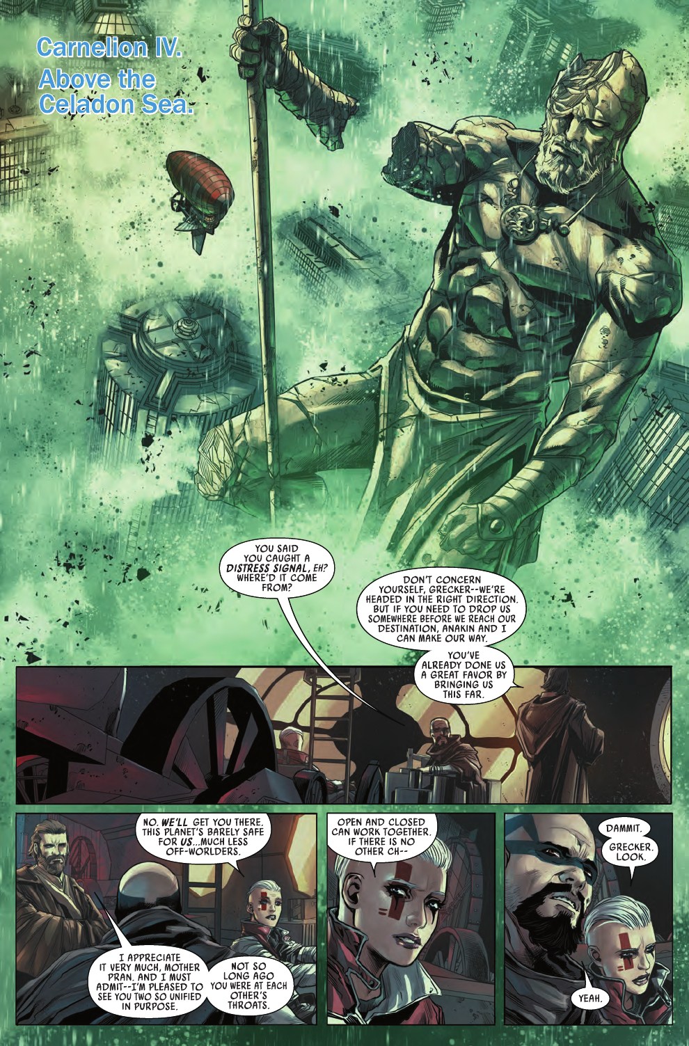 Ein Kampf zwischen zwei Luftschiffen erfolgt, woraufhin eines gen Oberfläche stürzt. Obi-Wan gelingt es, zwei Frauen aus dem abgeschossenen Schiff zu retten, und einen Mann namens Grecker aus dem anderen Schiff. Da ihr Überleben auf dem Spiel steht, wird der Krieg zwischen den Überlebenden beseitegeschoben, um ein Schiff zu reparieren und den Rückzug in Sicherheit anzutreten…